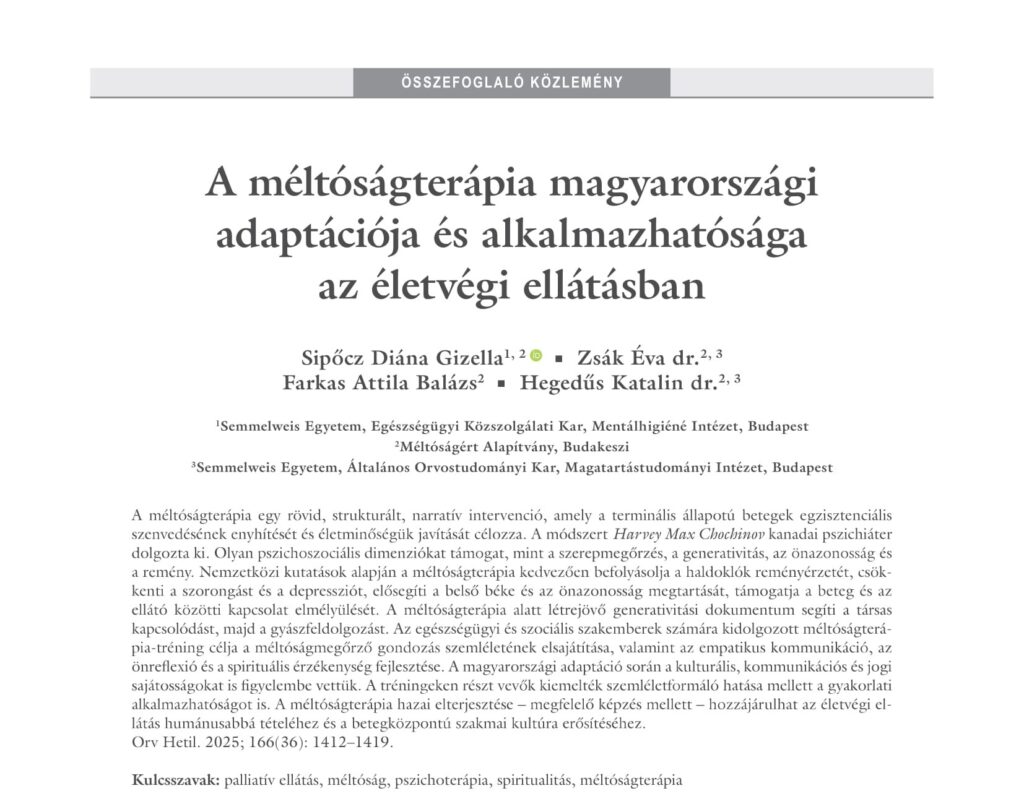 A cikk az Orvosi Hetilap 166. évfolyam 36. számában jelent meg (1412–1419 oldal), illetve a lenti hivatkozáson olvasható.